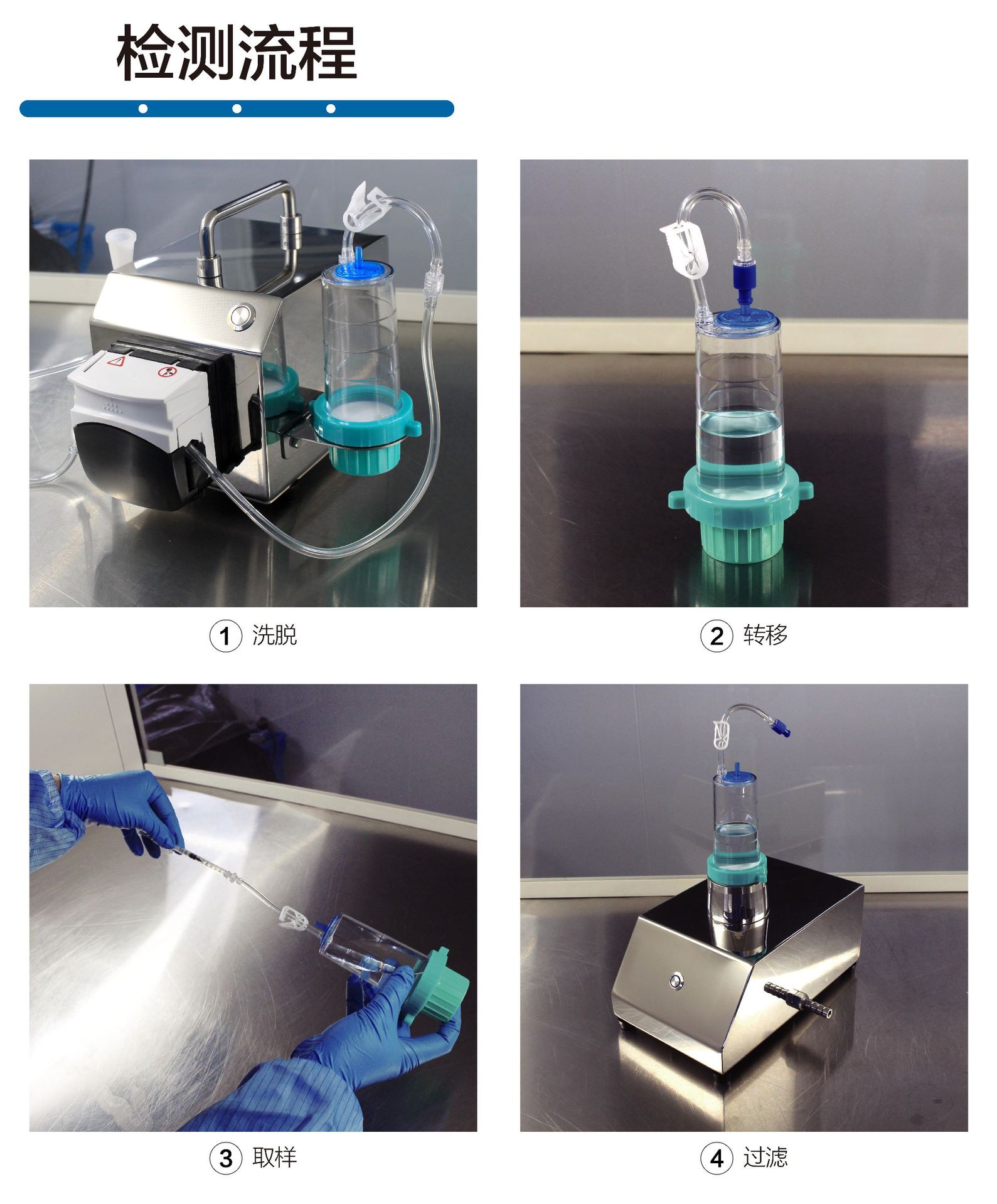 BY-101N型內鏡微生物(wù)檢驗儀與SD11N係(xì)列內鏡檢測取樣器配合使用。使用SD110-係列(liè)內鏡檢測(cè)取樣器,完(wán)成現場取樣後封閉杯體,然後轉移至(zhì)微生物實驗室,使(shǐ)用BY-101N型微生物(wù)檢驗儀進行抽濾,使微生物截留在濾膜上(shàng),進行培養後計數(shù)。適用於醫療衛生行業的內鏡微生物負載(zǎi)檢(jiǎn)測。